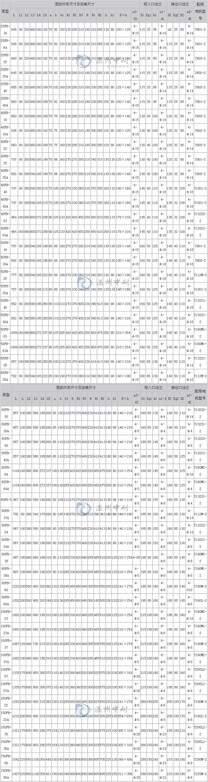 ■ FB、AFB型不锈钢离心泵┃耐腐蚀离心泵技术参数: