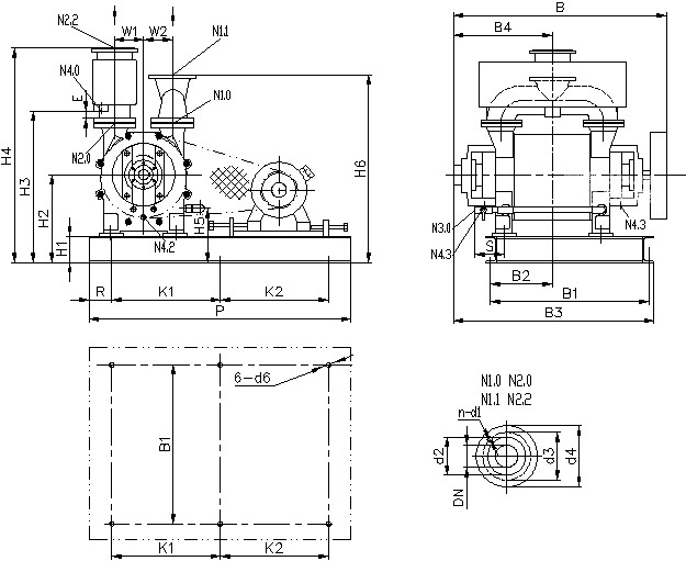 3、2BE型水环式真空泵在大气压到6000Pa的进口压力下的连续工作时间不超过3分钟,以免喷油或润滑不良引起泵损坏。