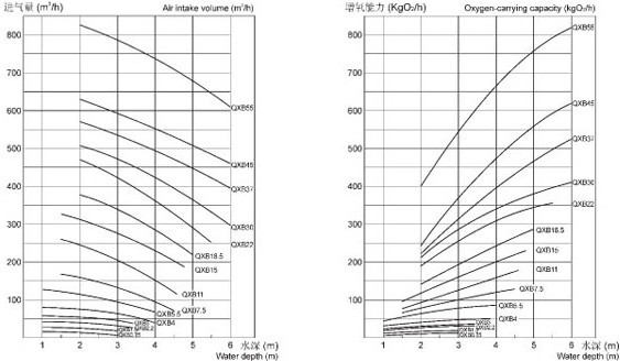 QXB型自吸式曝气,直联式结构。旋转的叶轮产生的离心力,在叶轮的进口处形成负压吸入空气和水,利用叶轮的动能在混合里将一定比例的气水混合,在强大的离心力下,气水二相流沿叶轮的切线方向经流道整流后,向圆周方向扩散,细碎的微小气泡充分与水融台,从而达到充氧曝气的效果。
