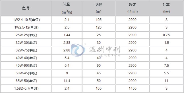 ■ 1W系列单级漩涡泵性能参数: