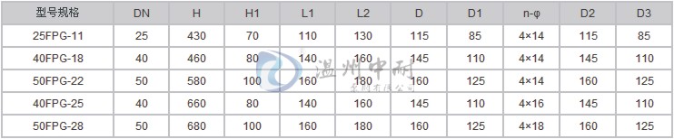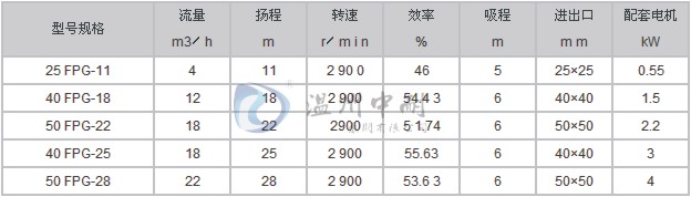 ■ FPG型增强聚丙烯管道离心泵性能参数: