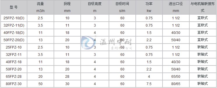 产品简介:FPZ托架式增强聚丙烯自吸泵主要用于输送酸,碱,盐等腐蚀性液体,但不得用于输送若干对ABS工程塑料有显著作用的化学品,如芳烃、脂肪烃的卤素衍生物,酮类及浓酸碱等。