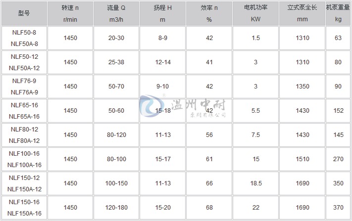 NLF立式不锈钢泥浆泵系单级单吸立式离心泵,主要部件有蜗壳、叶轮、泵座、泵壳、支撑筒、电机座、电动机等组成。蜗壳、泵座、电机座、叶轮螺母是生铁铸造、耐腐蚀性较好,加工工艺方便。叶轮为三片单园弦弯叶,选用半封闭叶轮,并采用可锻铸铁、所以强度高,耐腐蚀;加工方便,通过性好,效率高。为了减轻重量和减少车削量、泵轴是优质碳素钢冷拉园钢制造。泵座中装有四只骨架油封和轴套,防止轴磨损,延长轴的使用寿命。NLF立式不锈钢泥浆泵可垂直或倾斜使用,占地面积小,蜗壳需埋在工作介质中工作,容易启动,不需引水,旋转方向应从电机尾部看是顺时针方向工作。NLF立式不锈钢泥浆泵总机长度备有各种规格,以便使用单位根据用途因地制宜地选用。