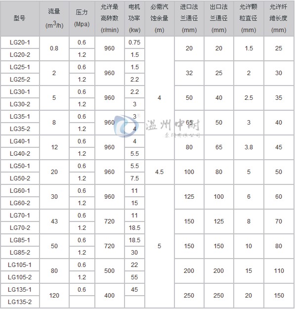1、固体颗粒度大小与各型号泵“转子”偏心(e)有关。