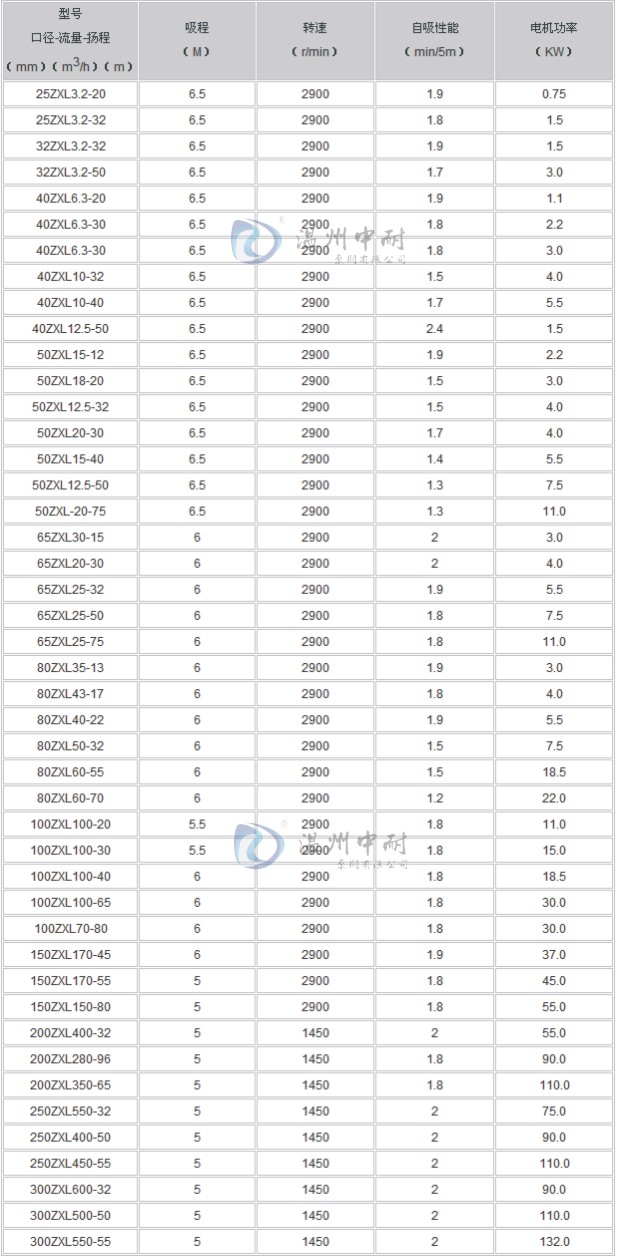 ■ 直联式自吸泵性能参数: