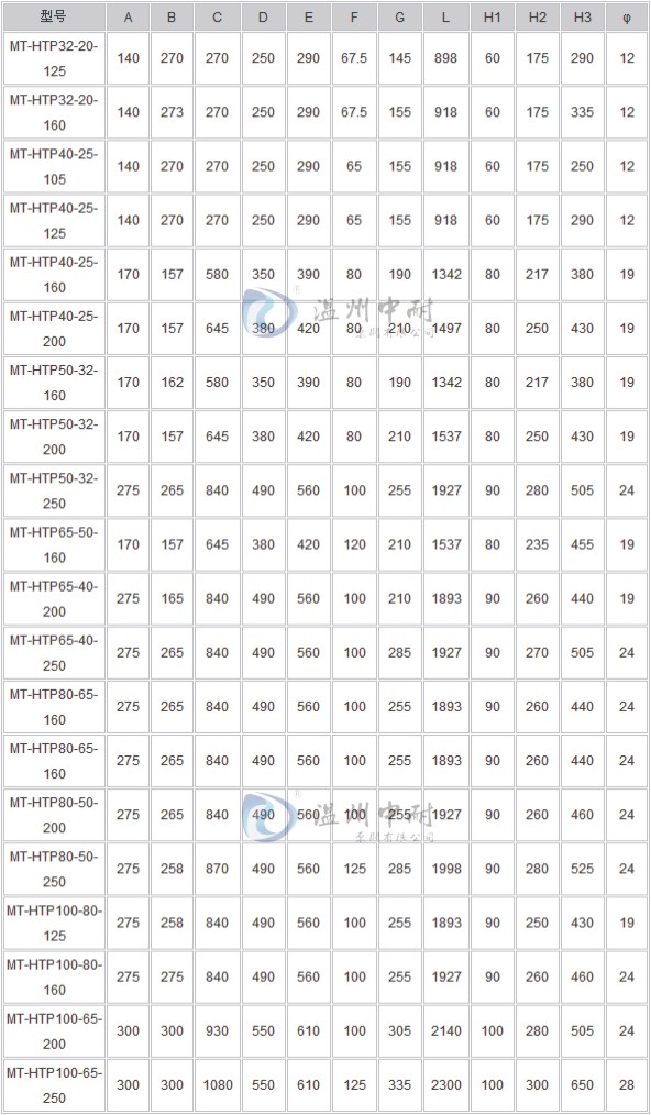 ■ MT-HTP型高温磁力驱动泵性能参数: