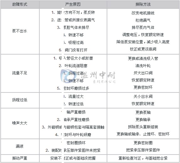 4、被输送的介质及其温度应在泵材允许范围内(详见附表)。工程塑料泵的使用温度<60℃,金属泵的使用 温 度<100℃,输送吸入 压力不大于0.2mpa,大工作压力1.6mpa、密度不大于1600kg/m3,粒度不大于30 × 10-6m2/s的不含硬颗粒和纤维的液体。