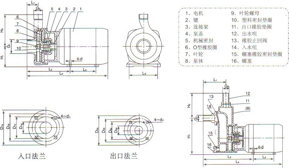 4、如输送介质或使用条件与本泵配置材料不相配时,可另议配置其它材质。