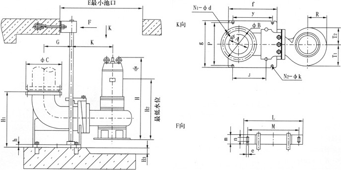 (5)电泵潜入水中时,应垂直起吊,不允许横放着地,更不能陷入污泥中。停止使用时应将电泵吊起清洗干净, 置于干燥处,并注意防冻。