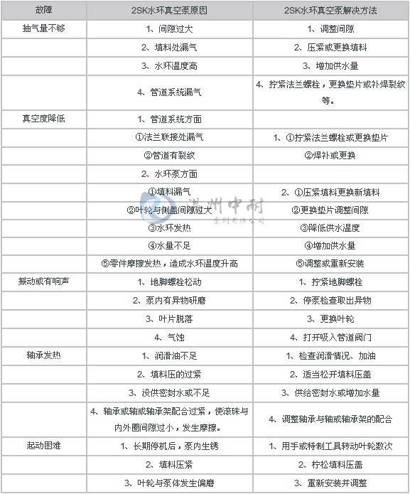 1、2SK型两级水环式真空泵应定期的压紧填料,如填料因磨损而不能保证所需要的密封时应换新填料,填料不能压得过紧,正常压紧的填料允许水成滴漏出。但量不得太多,应用油浸石棉绳做填料。