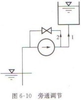 此调节方法的经济性比节流调节还差,而且回流的流体会干扰泵入口的流体流动,影响泵的效率。旁通调节虽然不经济,但在某些场合下仍然可以采用,如锅炉给水泵为了防止在小流量区可能发生气蚀而设置再循环管路,进行旁通调节。