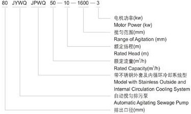 JYWQ、JPWQ自动搅匀潜水排污泵:例如 80JYWQ50-10-1600-3