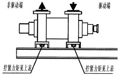 为了传递力及力矩,紧定螺栓必须拧紧在泵支脚上。为了弥补由于水泵的热膨胀可能产生的松动,非驱动端不必像驱动端拧得那样紧。驱动端和非驱动端系紧螺钉的拧紧力矩见下表。