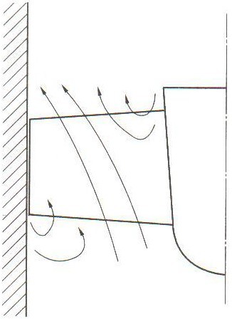 轴流泵的特性曲线具有这样的形状,是因为当流量减小时,液流的相对速度与圆周方向间的夹角减小,而叶片安放角不变,致使叶栅翼型的冲角增大。流量越小则冲角越大,当冲角增大到一定程度时,翼型表面将产生脱流。所以当流量从佳流量Qe减小时,翼型的冲角增大而使升力系数增加,故扬程增大。在流量减小到小于Q2时,因冲角过大翼型产生脱流,升力系数下降,扬程降低。而流量减小到小于Q1时,扬程不是降低而是又升高,这是由于在叶轮中液体产生二次回流所致。当流量减小到小于Q1时,叶轮各计算流面产生的扬程各不相等,引起液体的二次回流(图2),由叶轮流出的液体,一部分又重新回到叶轮中再次接受能量。二次回流是依靠撞击来传递能量的,因此水力损失很大,在扬程增加同时也极大消耗了泵的功率,致使效率急剧降低。所以在轴流泵的效率曲线上,当流量减小时效率下降较快,高效率工作区域狭窄。鉴于轴流泵特性曲线的特点,关闭出口阀门启动时,往往使轴流泵难以启动,且电动机有超载的危险,所以在启动轴流泵时,出水管路阀门必须全开,以减小启动功率。