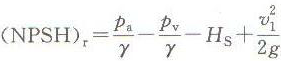 (3)必需汽蚀余量(NPSH)r 泵类产品样本中所提供的汽蚀余量是临界汽蚀余量。为了保证水泵正常工作时不发生汽蚀,将临界汽蚀余量适当加大,即为必需汽蚀余量。其计算式为:(NPSH)r=(NPSH)a+0.3m