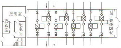(6)为了减小泵房的跨度,也可考虑将吸水阀门设置在泵房外面。