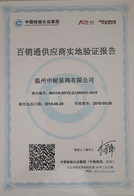 热烈祝贺温州中耐泵阀有限公司CCIC认证通过