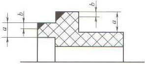 (4)软质材料容易在使用安装中造成崩边、划伤,一般不允许有内外相通的划道,软材料密封环允许的崩边图6所示,要求b/a≤1/5。