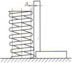 c、外径(或内径)、自由高度、垂直度 外径(或内径)用通用或专用量具测量。自由高度用通用或专用量具测量,测量弹簧高点。垂直度用平板和宽座角尺测量,如图8所示。在无负荷状态下,将被测弹簧竖直放在平板上,贴靠宽座角尺,自转一周,测量端头缝隙的大值△;再按此法测量弹簧的另一端面(端头至1/2圈处考核相邻第二圈),将两个测量值的较大值作为弹簧的垂直度误差。