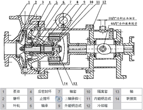 ■ CQB-G防爆高温磁力驱动泵结构说明: