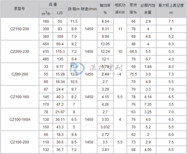 温州中耐泵阀生产的CZ型西德直联式离心泵系单级单吸悬臂直联式离心水泵,供吸送80℃以下清水或物理化学性质似于水的液体,适用于工厂、矿山、城市给水排水和农田灌溉等用途。