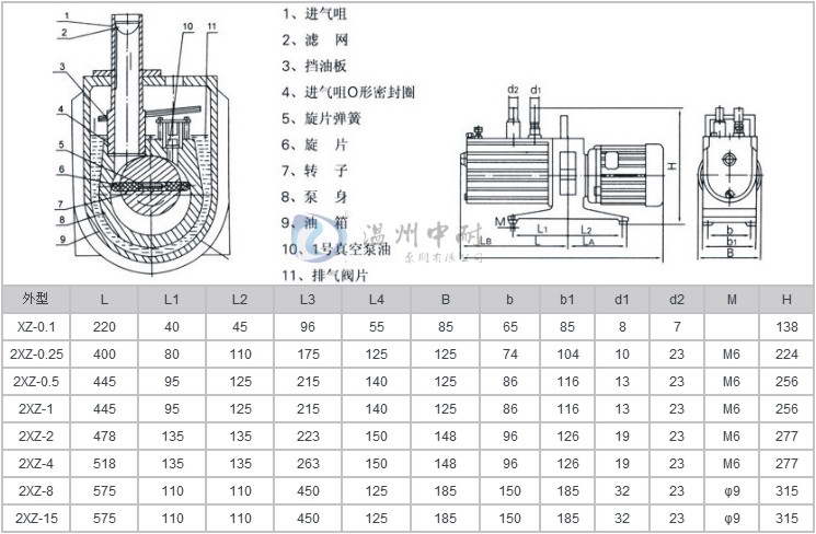 2XZ型双级旋片式真空泵具有体积小,重量轻、噪声低、起动方便等优点。此外,还有防止返油的措施(2XZ-8)和无防止油封漏油污染场地的措施。