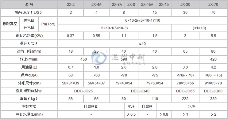■ 2X型双级旋片式真空泵性能参数: